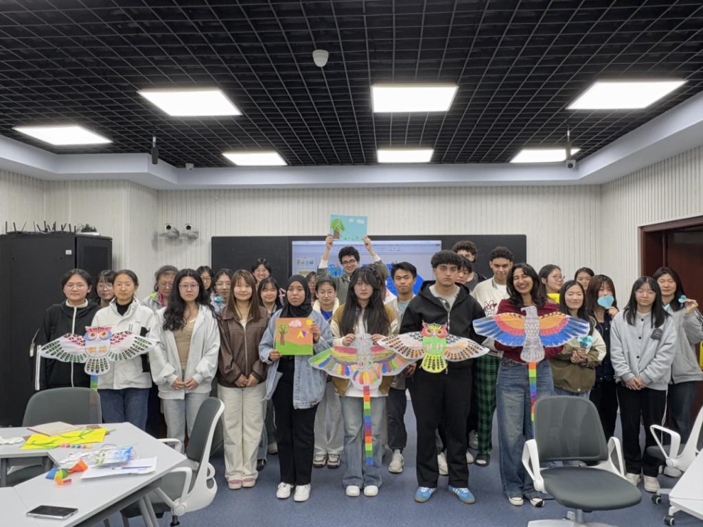 外国语学院于4月2日开展了“鸢语寄情·清明共话”英语角活动。活动邀请了来自摩洛哥的近10名国际学生与英语角协会的同学们共同参与。活动以非遗纸鸢为文化载体,通过中英双语互动,让中外学子在传统技艺体验中感受清明文化内涵。活动现场,中外学生协作完成纸鸢制作。从竹骨搭建、绢布裱糊到彩绘装饰,留学生们在穿针引线间感受“忙趁东风放纸鸢”的诗意美学。摩洛哥籍学生梅里感慨:“扎风筝时要心怀思念,就像中国人把情感编进...