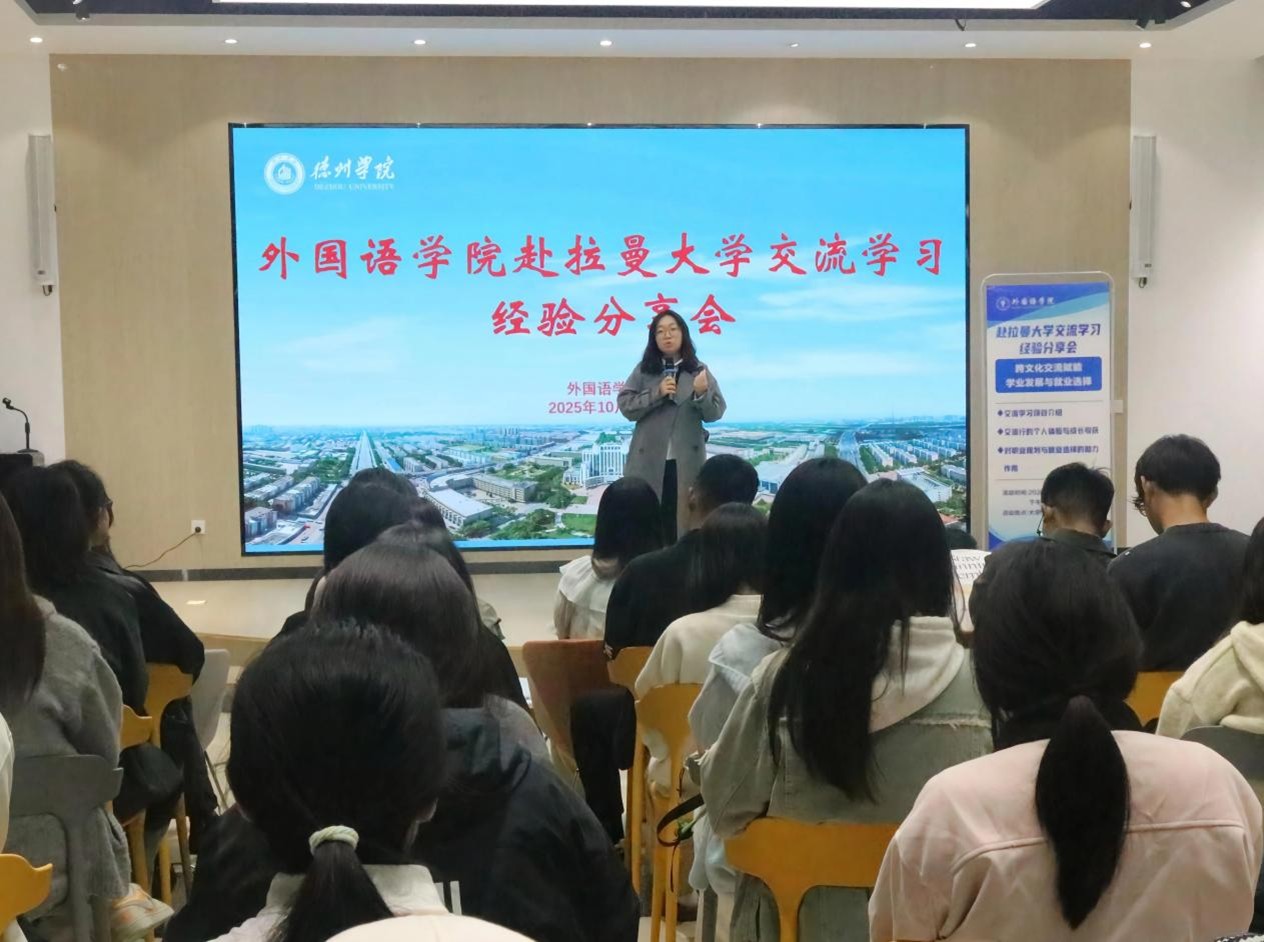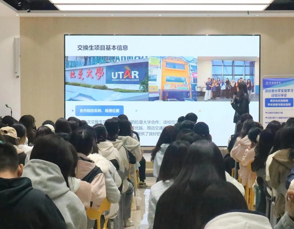 为发挥共青团思想政治引领就业育人功能,助力学子明晰学业发展与就业选择,10月12日,外国语学院在大学生就业创业赋能中心举办“赴拉曼大学交流学习经验分享会”。外国语学院团委书记朱馨馨,参加交流行的5位学生代表及200余名在校生共同参与。