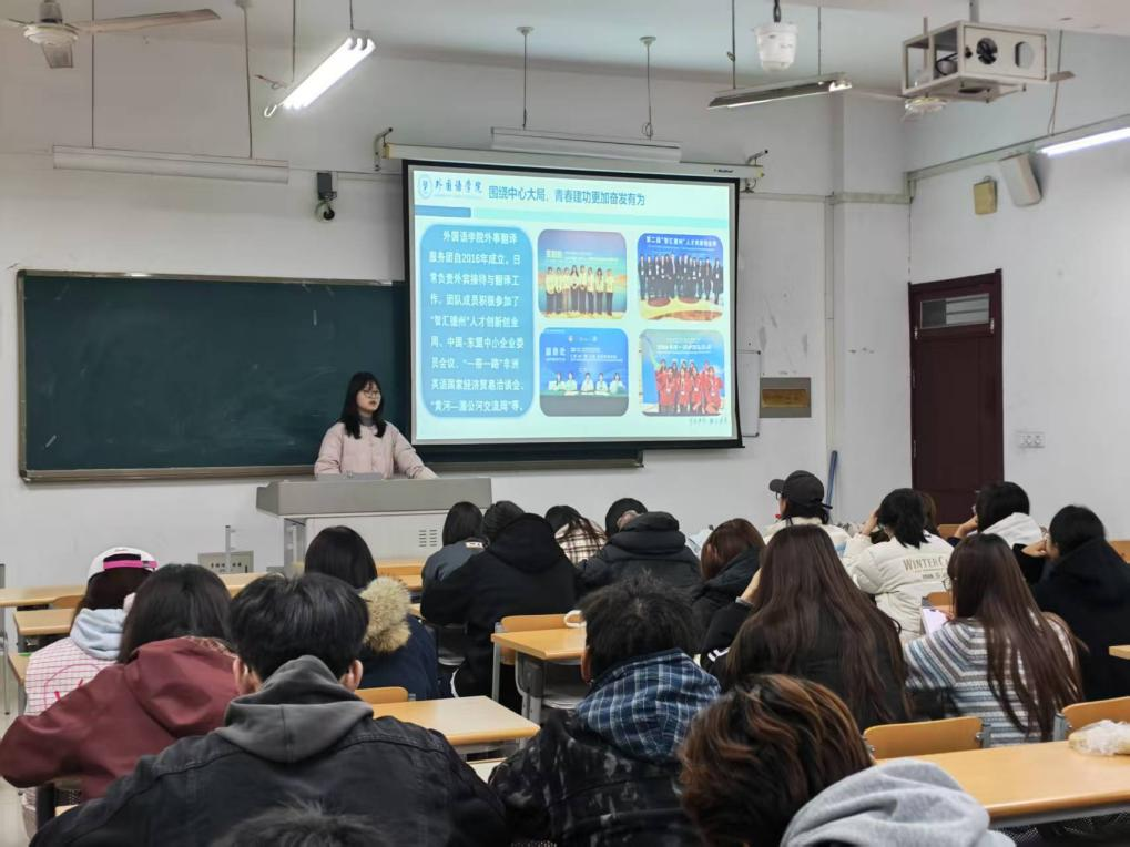 为充分发挥我院优秀学子的榜样示范作用,引导新生科学规划大学生活,营造积极向上的班风、学风,10月19日至11月5日,外国语学院组织开展“我们身边的榜样——优秀学子宣讲”活动,组织国家奖学金、省政府奖学金等各类奖项获得者及优秀学子代表,走进大一各班开展经验分享交流活动。