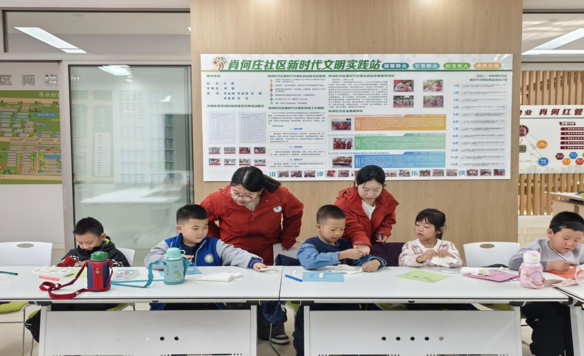 10月26日,2024级商务英语一班团支部走进肖何庄社区,开展“四季花语・英语启蒙”公益课堂。课堂以季节、天气为主题,将英语词汇教学融入趣味手工创作。志愿者们通过单词接龙、情景模拟等互动游戏,配合手工制作教学,让英语学习变得轻松有趣,有效帮助孩子们打破语言学习壁垒,激发学习兴趣。
