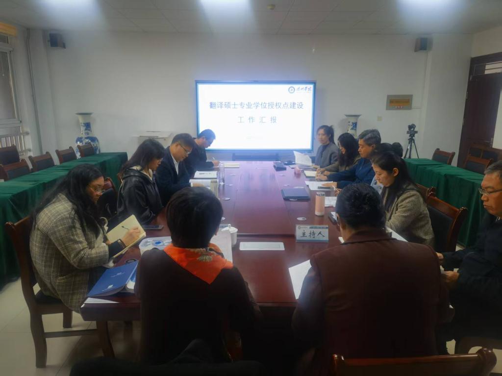 为科学推进翻译硕士学位授权点建设与申报工作,构建符合区域发展需求、彰显学科特色的高层次外语人才培养体系,11月14日,德州学院外国语学院特邀青岛大学党委委员、外国语学院院长卞建华教授到校,开展翻译硕士学位点建设专题论证指导。外国语学院院长张锦辉、骨干教师及翻译硕士学位点建设工作专班共同参会,围绕翻译学位授权点建设核心议题展开深度研讨。