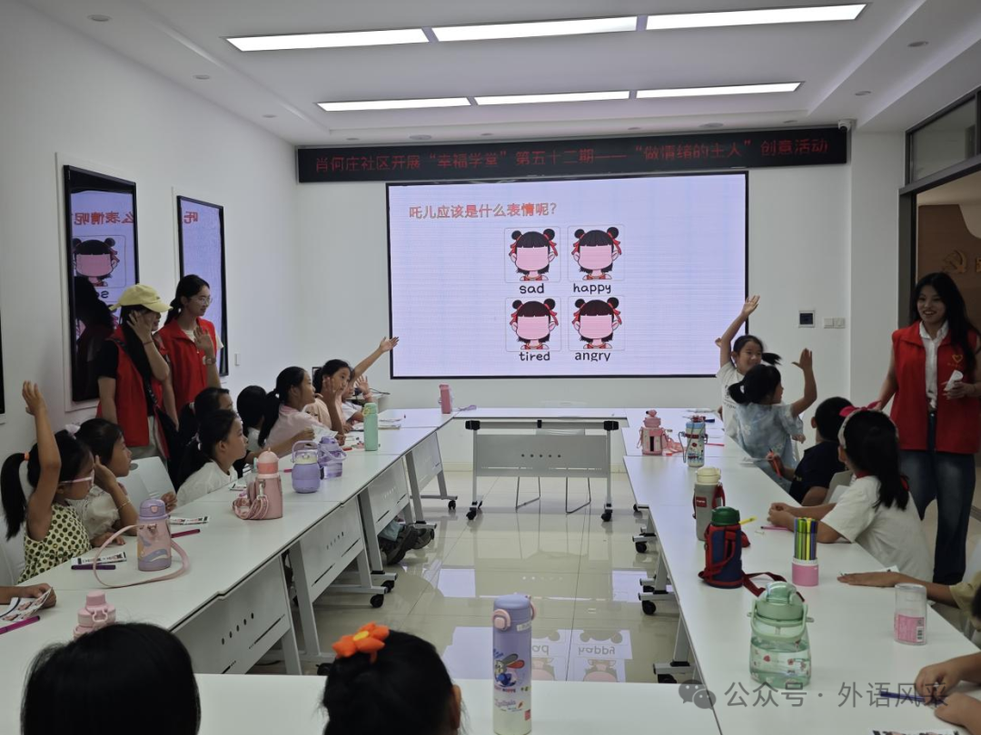 9月13日,德州学院外国语学院“小语滴·大世界”志愿服务队分别走进绿城社区、肖何庄社区,开展以“How are you feeling?”为主题的儿童英语启蒙活动,将英语语言学习与情绪认知教育有机结合,为儿童提供趣味化、实用性的启蒙课堂。