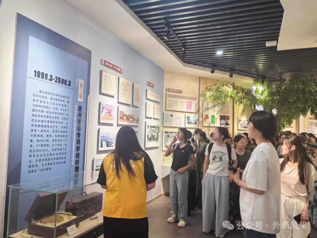 为激发新生“知校、爱校、荣校”责任感,外国语学院组织新生参观德院校史馆。在参观过程中,讲解员详细介绍了德院的发展历程、重要事件以及杰出校友。新生们通过一幅幅历史照片、一件件珍贵实物,深刻感受到了德院深厚的文化底蕴和独特的精神内涵。此次参观活动不仅增强了新生对德院的认同感和归属感,也激发了他们为德院争光的荣誉感和使命感。