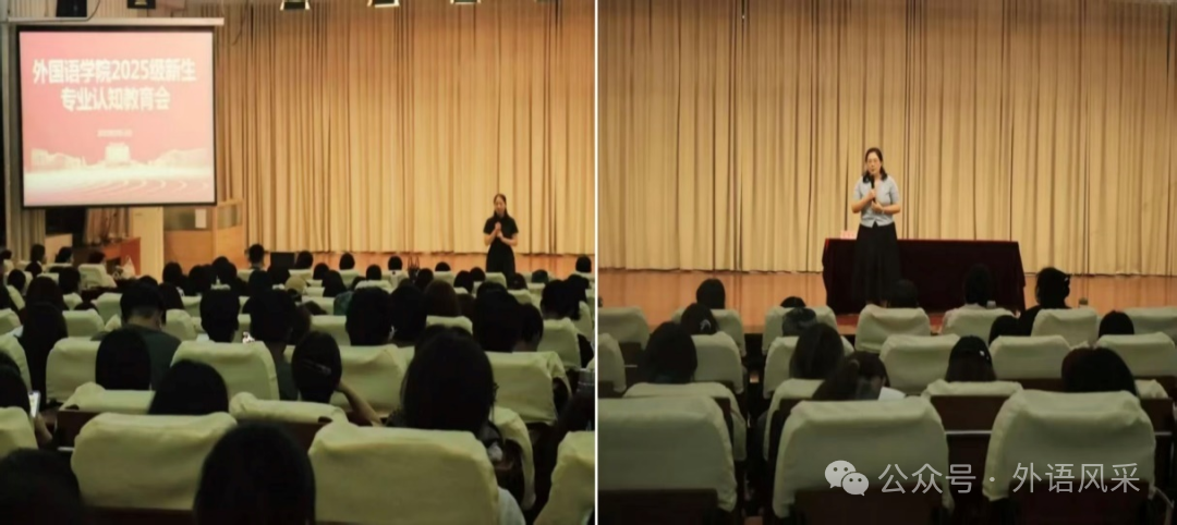 外国语学院举行“新声·新语·新世界”2025级新生专业认知教育大会,副院长龙娜娜主持。会上,各系介绍了课程体系、培养目标、就业方向与特色;竞赛中心分享赛事资源与备赛建议;实践中心介绍实践与实习安排;教务办公室解答学籍、成绩、毕业等问题。学院党委副书记、院长张锦辉对365名新生表示欢迎,并提出三点期望:学会自律、包容与反思,努力成为兼具国际视野与家国情怀的高素质外语人才。大会帮助新生快速了解专业与学院资源,明确发展方向,为大学生活注入信心与动力。