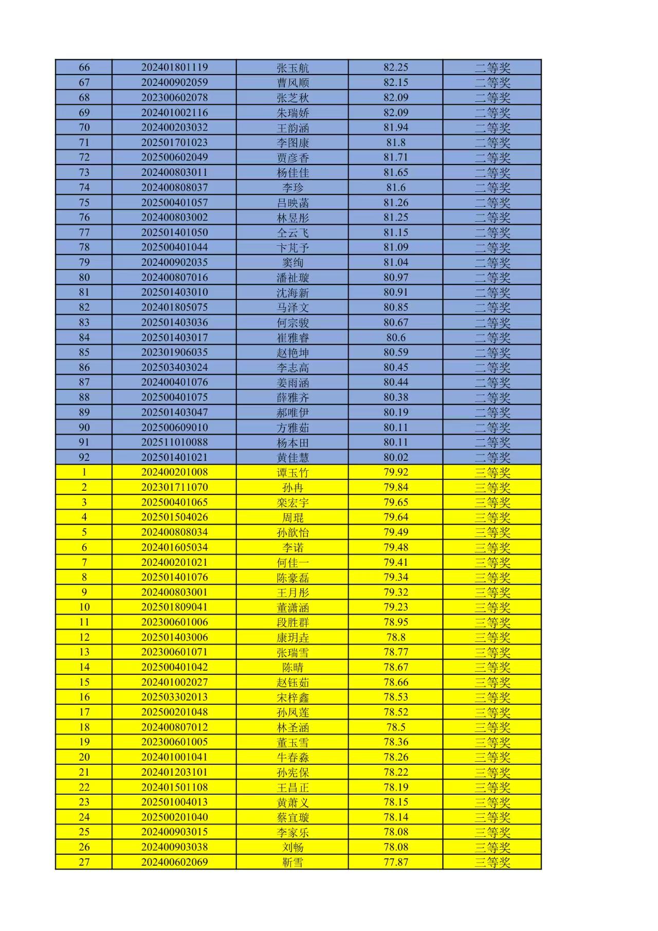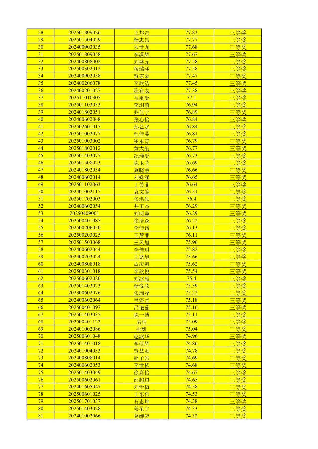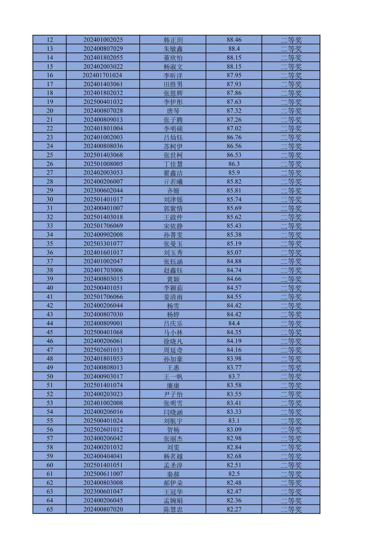 经严格依据做题得分排序,现将获奖结果公示如下: