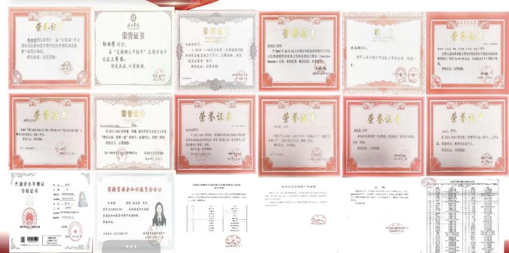 她秉持勤学不辍的信念深耕专业领域,学业成绩连续两学年稳居年级专业前列,始终保持优异水准。入学之初便明确学业目标,将扎实学识作为成长根基——课堂上专注求索、图书馆潜心钻研、课后主动拓展,在每一个学习场景中锤炼专业技能,对课程知识刨根问底,积极追踪专业前沿动态与学术进展。为检验学习成效、突破能力边界,她主动挑战各类高水平赛事,先后参与“外研社·国才杯”综合能力大赛、“外研社·国才杯”笔译大赛、“田家炳杯”教学技能大赛校院赛、“华文杯”教学技能校院赛等,均斩获佳绩。她坚信,赛事的价值不仅在于荣誉,更在于筹备中的积淀、角逐中的磨砺与眼界的拓宽,这些都是成长路上最珍贵的财富。