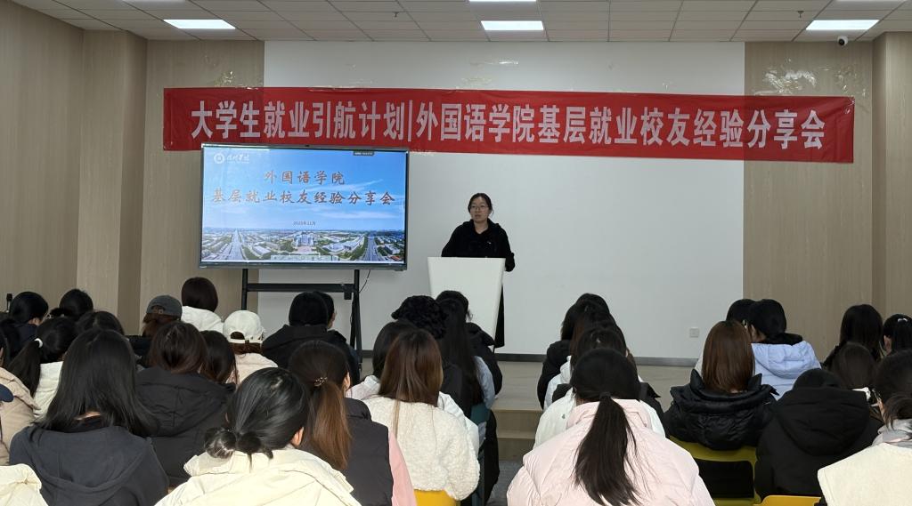 为帮助应届毕业生精准把握基层就业方向、系统掌握备考核心策略,11月28日,外国语学院举办基层就业校友经验分享会。本次活动特邀学院2022届校友刘玉伟主讲,团委书记朱馨馨主持,学院百余名应届毕业生及低年级学生到场参与。