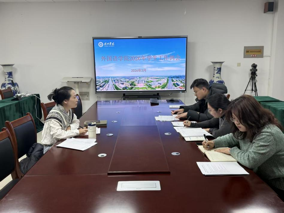 为扎实推进春季学期学生工作有序开展,压实育人责任,筑牢学生成长安全保障防线,3月16日,外国语学院于博文楼240会议室召开2026年春季学期学生工作例会,统筹部署本学期各项重点工作,学院学生工作负责人及全体辅导员参会。