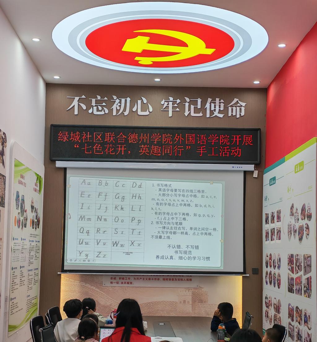 3月21日,2025级英师一班团支部走进绿城社区,开展“Hi&Bye, My Dear Friends”主题英语启蒙活动。活动围绕日常交际场景,从打招呼、说再见入手,延伸至自我介绍,搭配手工绘画、字母教学、动画互动等趣味环节,让儿童在玩中学,在动手创作中巩固词汇,实现语言学习与美育实践的融合。