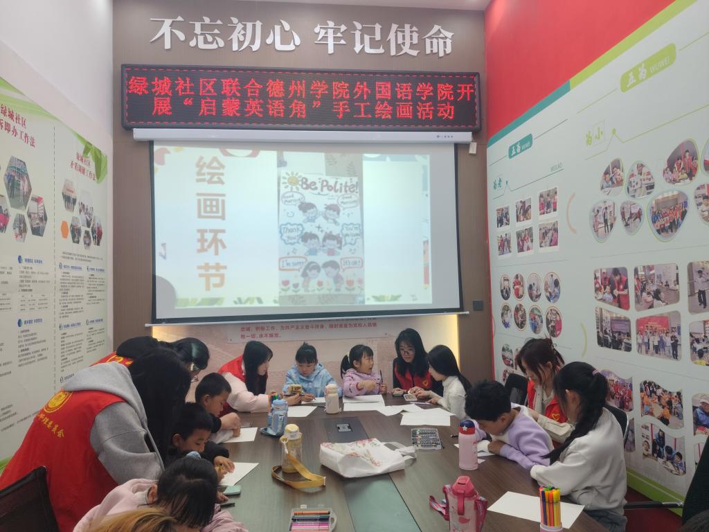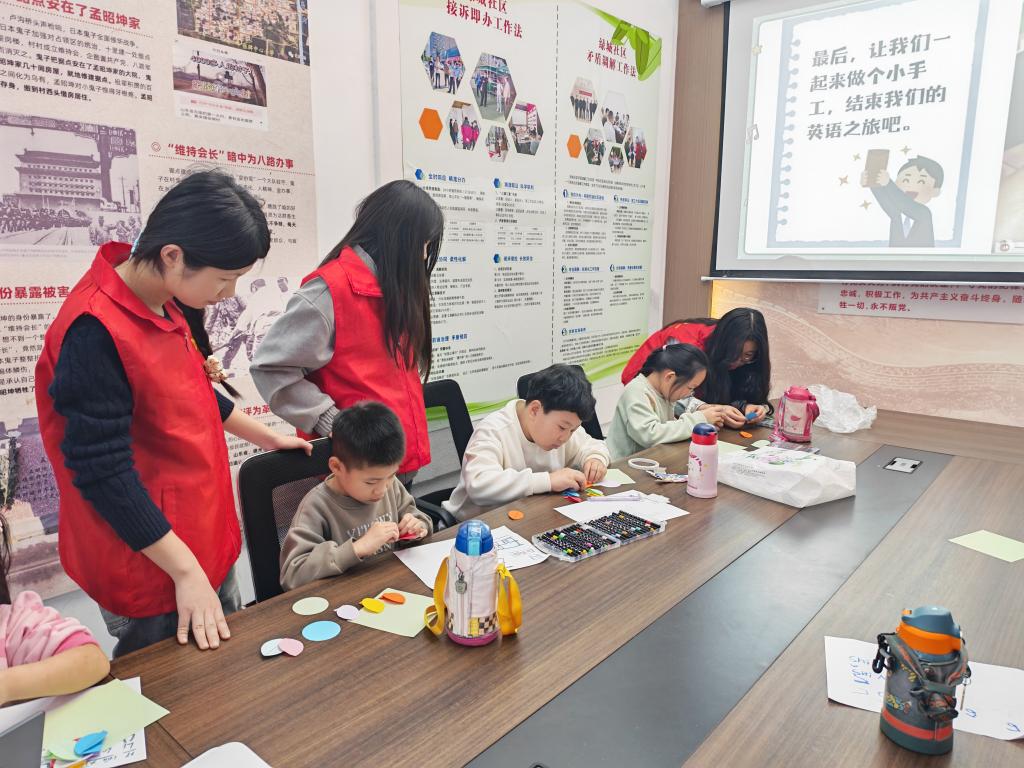 外国语学院“小语滴・大世界”志愿服务队响应“百万大学生进社区”号召,三月走进绿城社区,开展多场英语启蒙志愿服务,以专业所长践行志愿责任,深化校地协同育人。